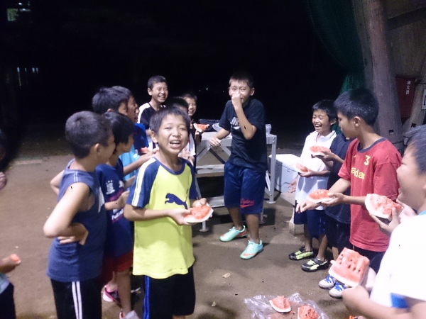 | 無事に中津江合宿も終わりました 勝ち負けもありましたが、たくさんの事を学んだ三日間でした この合宿をきに「戦える選手」「負けず嫌いな選手」「考えれる選手」に変わってほしいですね 本当に辛くもあり、楽しくもあり充実した三日間でした スイカ割したかったなぁ~ |